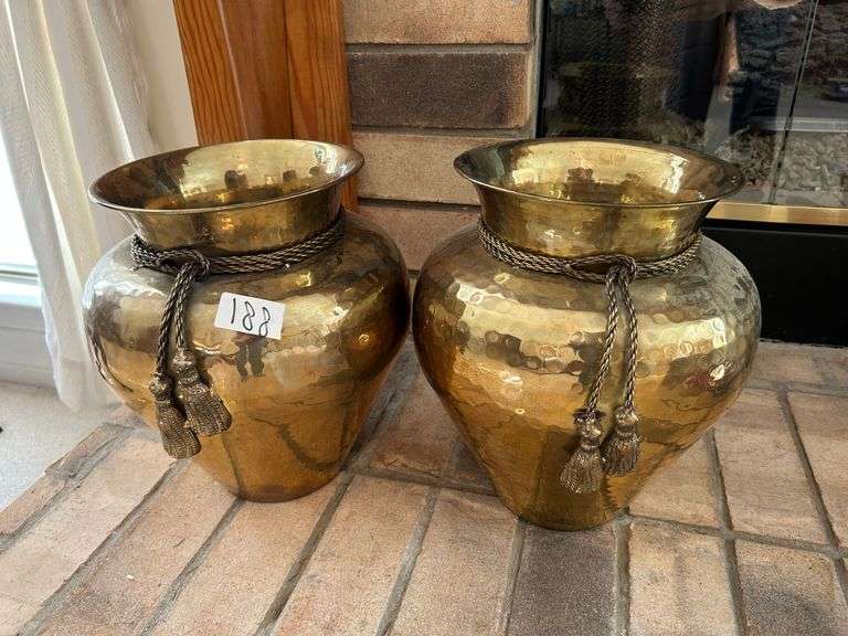 LOT 188 - 2pc Metal Planters 11” Tall (Located Upstairs in Living Room)