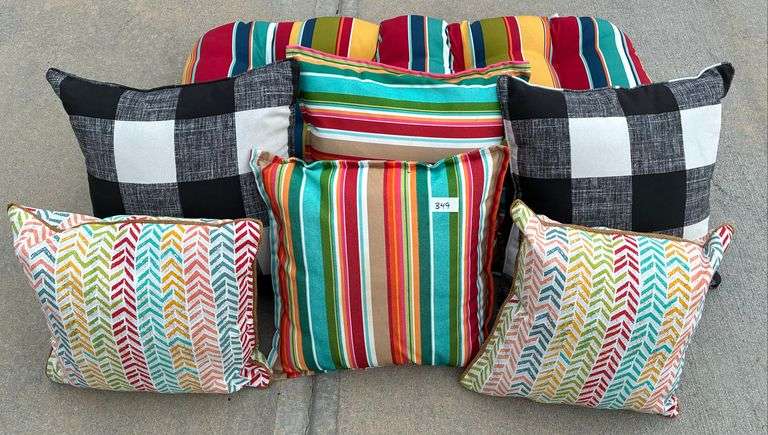 LOT 349 - 7 pc Pillows and Double Seat Cushion (Located Garage)