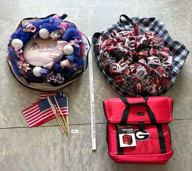 LOT 371 - Atlanta Braves and Georgia Wreaths, Georgia Cooler Bag and American Flags (Located Garage)