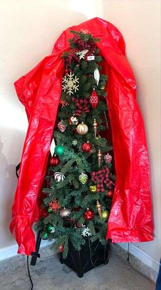 LOT 375 - Decorated, Lighted Tree in Pot with Dust Cover (Located Garage)
