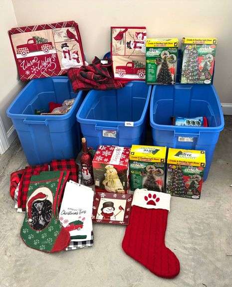 LOT 376 - 3 pc Totes with Christmas Towels, Lights, Decor and More (Located Garage)