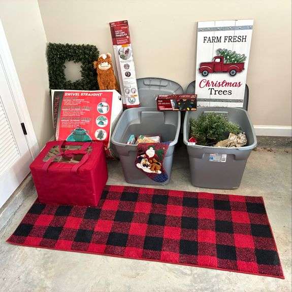 LOT 379 - Swivel Tree Stand, Christmas Ornaments, Cards and More (Located Garage)