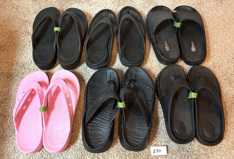 LOT 290 - 6 Pairs Ladies Size 8 Crocs, Hoka,32 Degree Cool and More (Located Downstairs Bedroom)