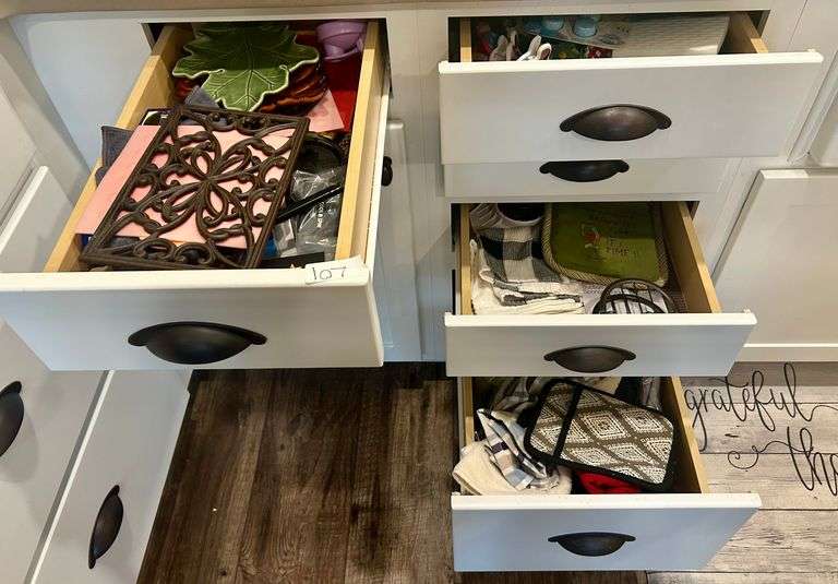 LOT 107 - 4 Drawer Lot or Oven Mitts, Napkins and More (Located in Kitchen)