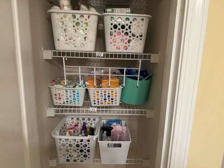 LOT 128 - Miscellaneous bathroom items, Including cotton rounds, q-tips, tissues and morelocated in hall bathr