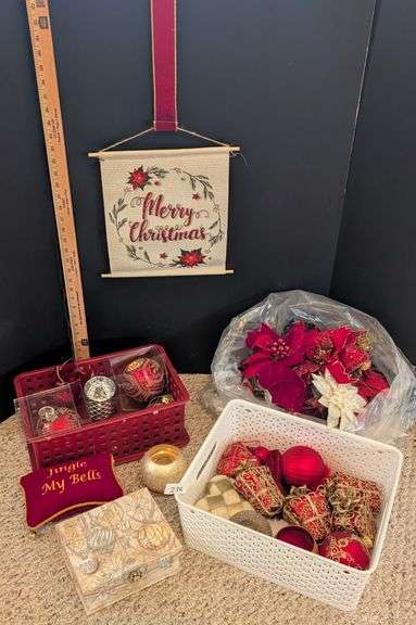 LOT 236 - Christmas ornaments, decor, and more (located in living room cabinet)
