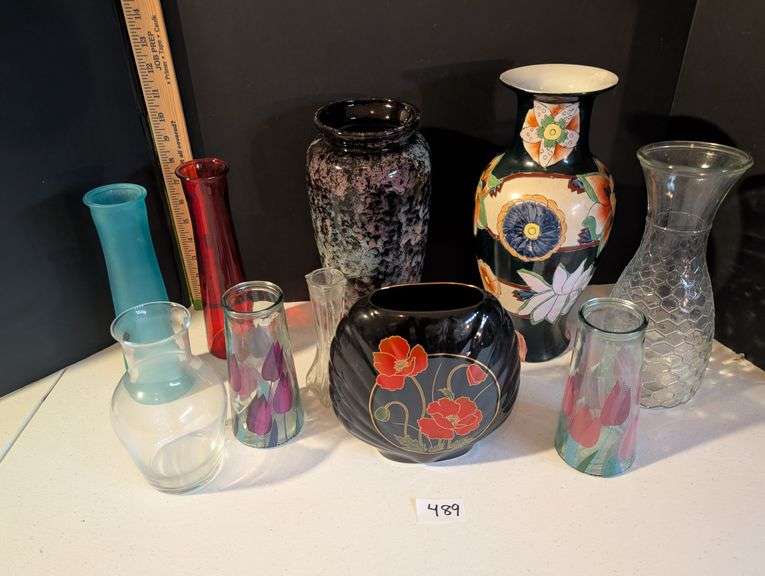 LOT 489 - 10 pc. Various size vases(located in garage)