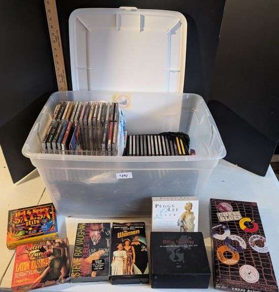 LOT 491 - Large tote of CDs and more-Billie Holiday, Peggy Lee, Chess Blues(located in garage)