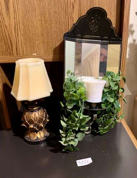 LOT 359 - 2 Piece Candle Holder Wall Decor and Candle Lamp